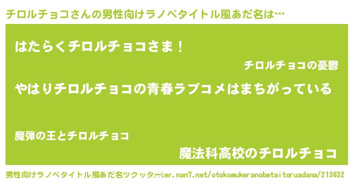 | ファンタジー風あだ名 | 『エターナルチロルチョコー』 |