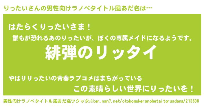 | ヒーロー風カッコイイあだ名 | 『仮面リッダー』『ネオリッタイ』 |
