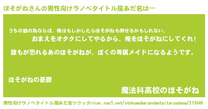| 意味不明あだ名 | 『永久保存ほそがね』『自称ほそがね』 |