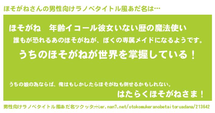 | 伝説のあだ名 | 『古文書に記された吟遊詩人ほそがね』 |