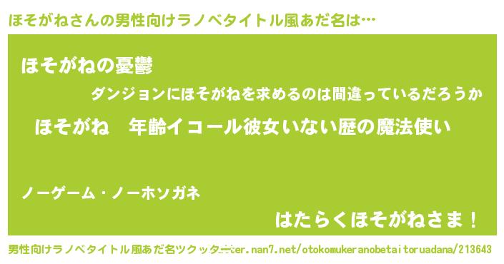 | ファンタジー風あだ名 | 『ユリホソヴァット』『ホソフェル』 |