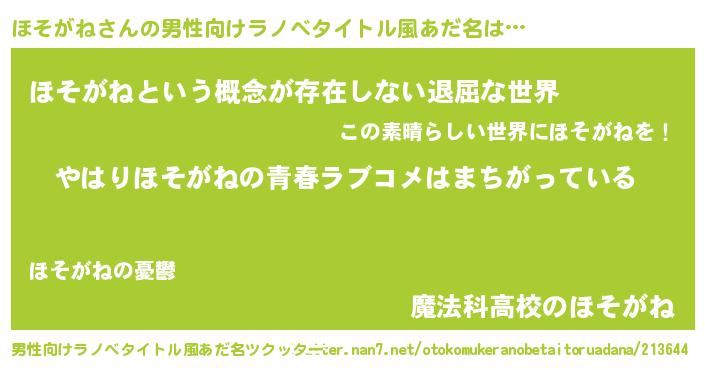 | 胡散臭い通販商品みたいなあだ名 | 『幸せが訪れる高級そうな絵画…その名も「ほそがね」』 |