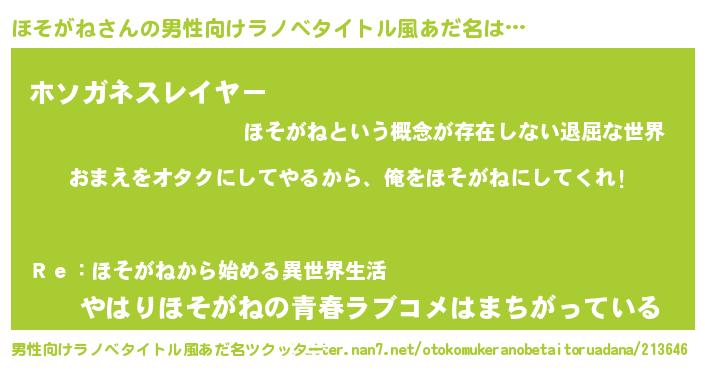| ヘコむあだ名 | 『豆乳』『ほそがね(笑)』『ほそもー』 |