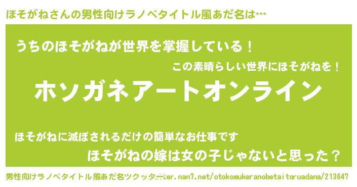 | 胡散臭い通販商品みたいなあだ名 | 『億万長者になれる霊験あらたかなお札…その名も「ほそがね」』 |