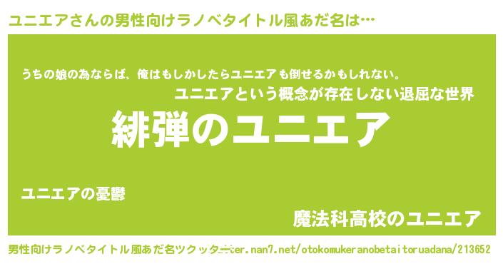 | 女子向けラノベタイトル風あだ名 | 『シンデレラユニエア家の靴箱館』 |