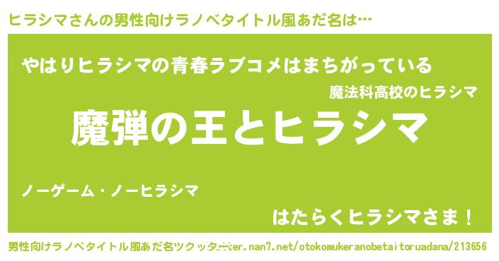 | 女子向けラノベタイトル風あだ名 | 『乙女ゲームの破滅フラグしかない悪役ヒラシマに転生してしまった…』 |
