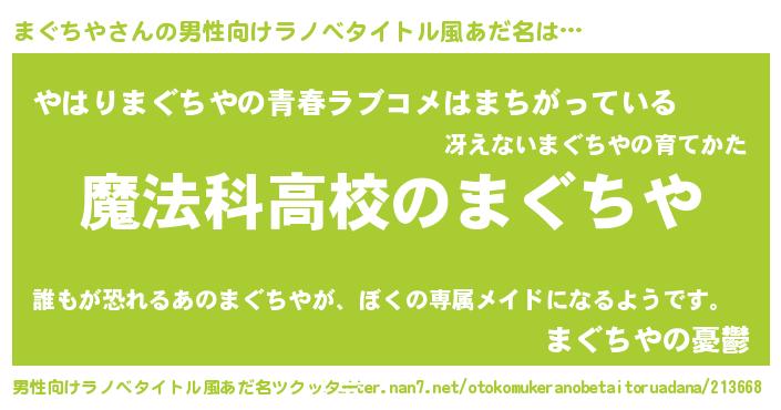 | 女子向けラノベタイトル風あだ名 | 『まぐちやなんてお断りですっ。』 |