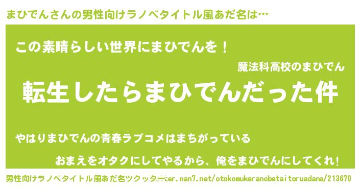 | 女子向けラノベタイトル風あだ名 | 『婚約破棄系悪役まひでんに転生したので、保身に走りました。』 |