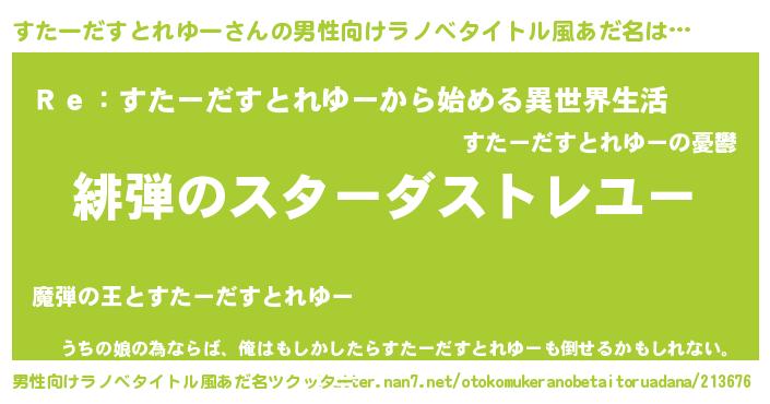 | 意味不明あだ名 | 『自称すたーだすとれゆー』 |