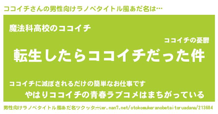| ヘコむあだ名 | 『豆乳』『ココにゅー』『ココっ子』 |