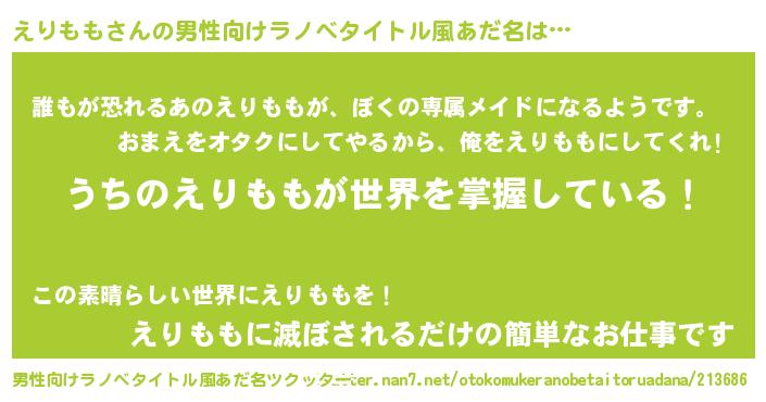 | 意味不明あだ名 | 『永久保存えりもも』『自称えりもも』 |