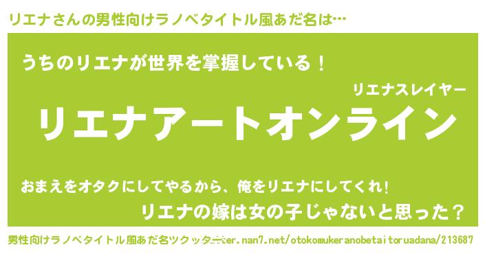 | 胡散臭い通販商品みたいなあだ名 | 『モテモテ間違いなし霊験あらたかなお札…その名も「リエナ」』 |