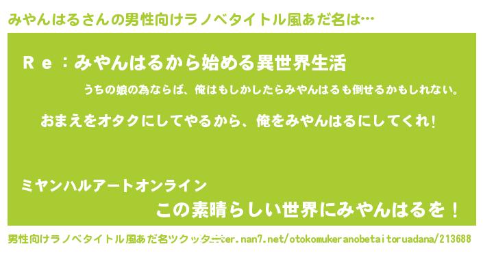 | 胡散臭い通販商品みたいなあだ名 | 『お金では代えられない隕石のかけら…その名も「みやんはる」』 |