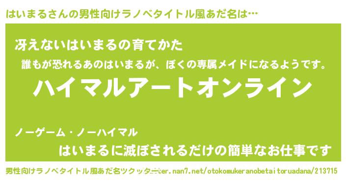 | 女子向けラノベタイトル風あだ名 | 『はいまる姫と円卓の騎士』 |
