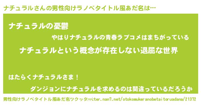 | ヘコむあだ名 | 『ナチュラル(笑)』『ナチふぇ~』 |