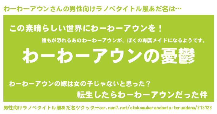| 胡散臭い通販商品みたいなあだ名 | 『モテモテ間違いなし霊験あらたかなお札…その名も「わーわーアウン」』 |