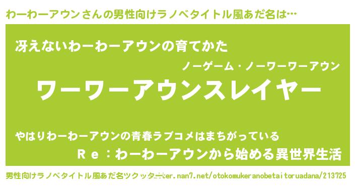 | 料理風あだ名 | 『わーわーアウンごはん』 |