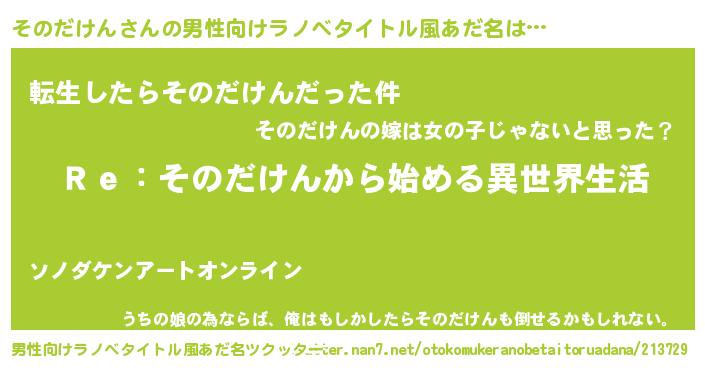 | 女子向けラノベタイトル風あだ名 | 『闇のそのだけん』 |
