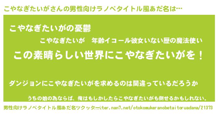 | 女子向けラノベタイトル風あだ名 | 『乙女ゲームの破滅フラグしかない悪役こやなぎたいがに転生してしまった…』 |