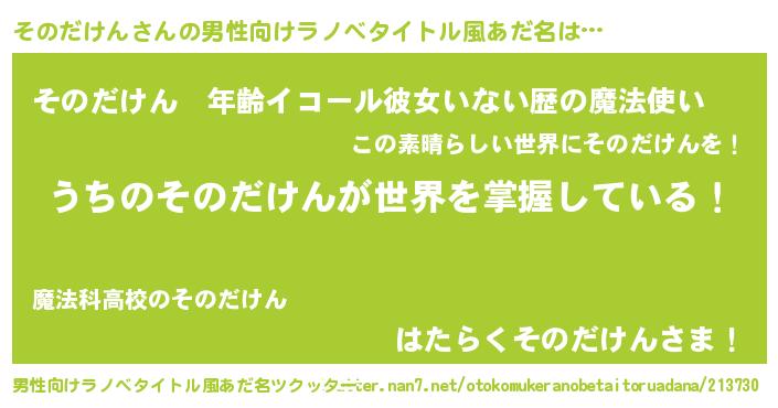| 胡散臭い通販商品みたいなあだ名 | 『あなたにだけ特別に提供する100年もののヴィンテージワイン…その名も「そのだけん」』 |