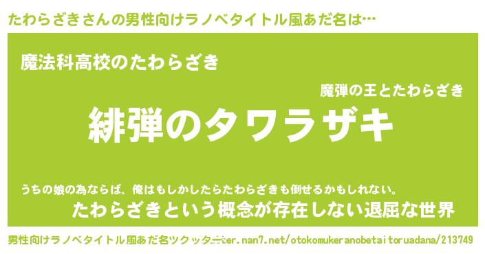 | 女子向けラノベタイトル風あだ名 | 『シンデレラたわらざき家の靴箱館』 |