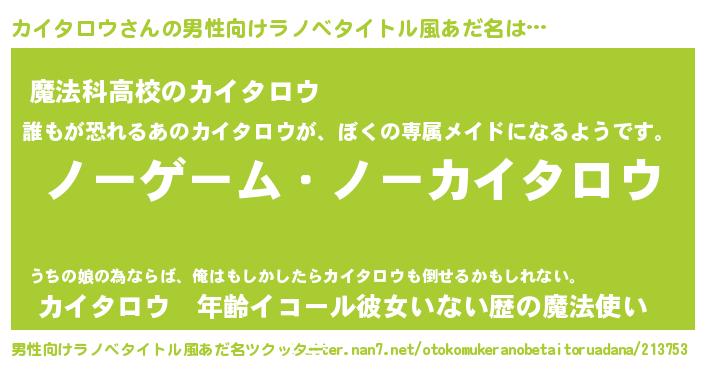 | ヒーロー風カッコイイあだ名 | 『慈愛の使者カイタロウ』『黄金騎士カイ』 |