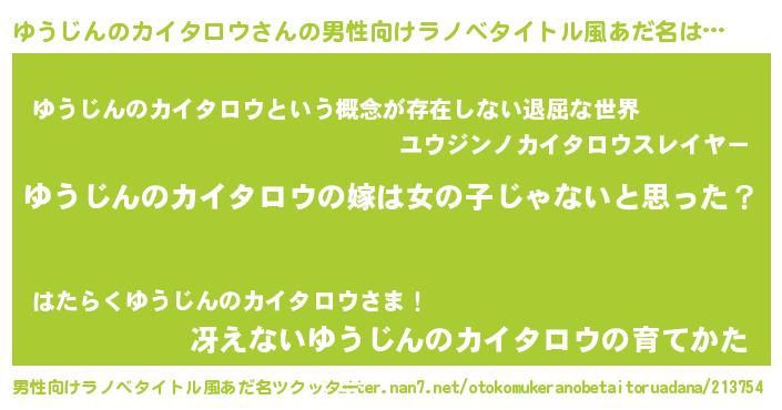 | 女子向けラノベタイトル風あだ名 | 『ゆうじんのカイタロウの卵を拾いまして』 |