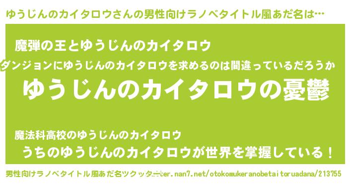 | 女子向けラノベタイトル風あだ名 | 『ゆうじんのカイタロウ姫と円卓の騎士』 |
