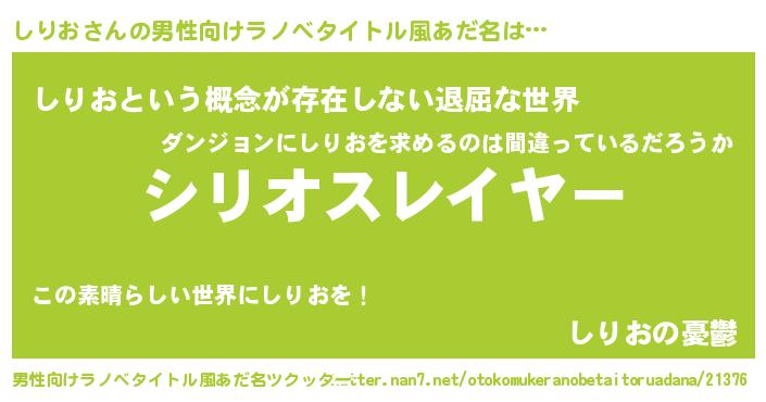 | 胡散臭い通販商品みたいなあだ名 | 『絶対に幸福をもたらす健康食品…その名も「しりお」』 |
