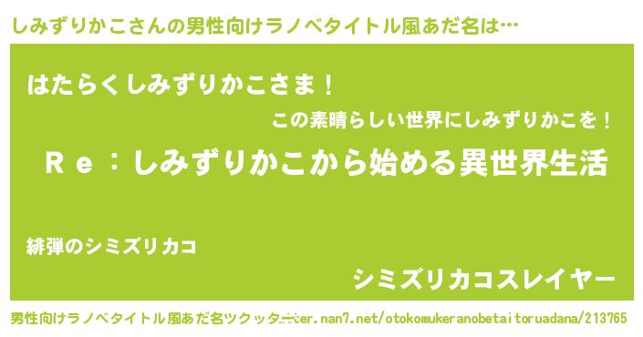| 意味不明あだ名 | 『自称しみずりかこ』 |