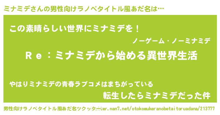 | ヒーロー風カッコイイあだ名 | 『究極戦士ミナミデ』『仮面ミナダー』 |