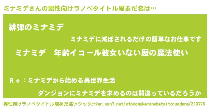 | ヒーロー風カッコイイあだ名 | 『幻影騎士ミナ』『ウルトラ戦士ミナミデ』 |