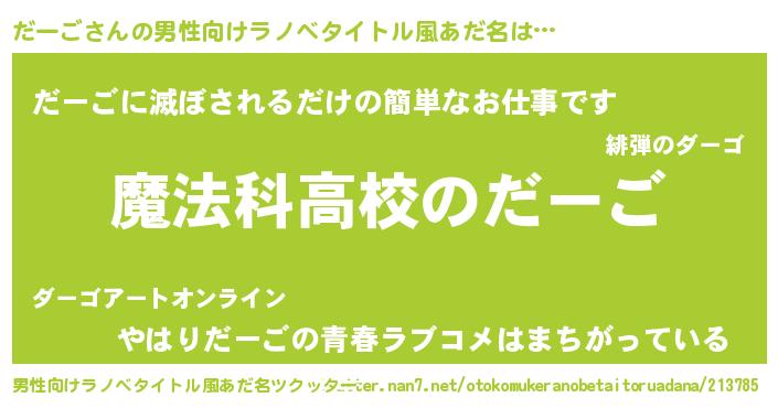 | 女子向けラノベタイトル風あだ名 | 『だーごなんてお断りですっ。』 |