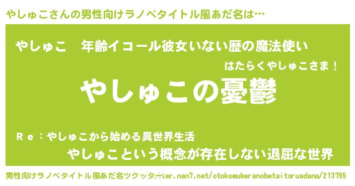 | 胡散臭い通販商品みたいなあだ名 | 『必ず成功する水晶球…その名も「やしゅこ」』 |