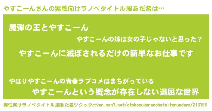 | 意味不明あだ名 | 『住所不定無職やすこーん(41歳)』 |