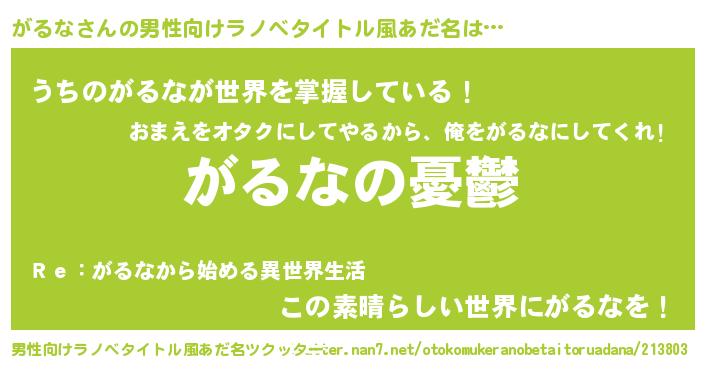 | 胡散臭い通販商品みたいなあだ名 | 『必ず成功するブレスレット…その名も「がるな」』 |