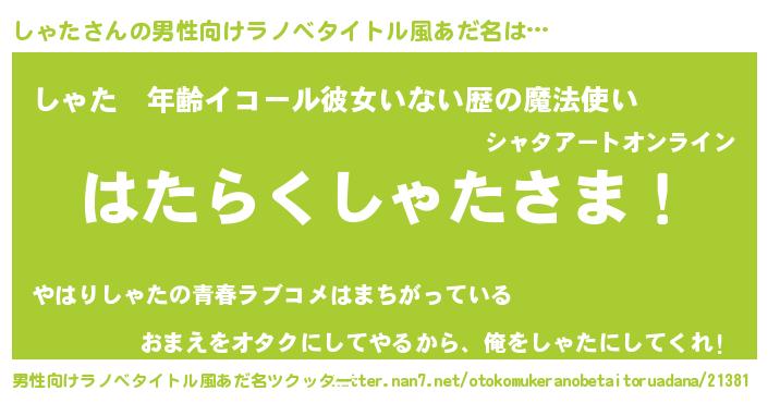 しゃたさんの男性向けラノベタイトル風あだ名をツクッター!