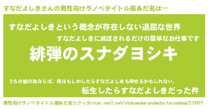 | 胡散臭い通販商品みたいなあだ名 | 『絶対に幸福をもたらす招き猫…その名も「すなだよしき」』 |