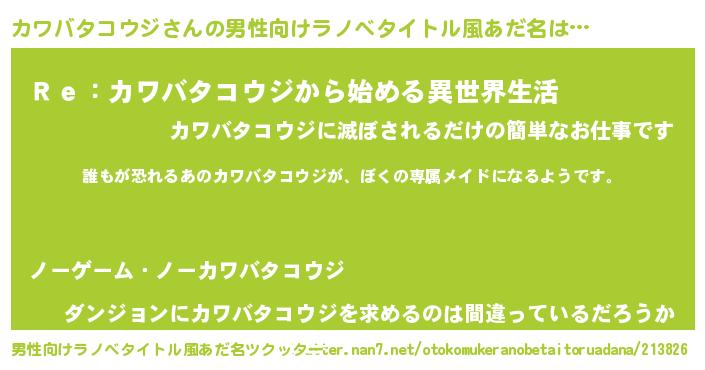 | 意味不明あだ名 | 『永久保存カワバタコウジ』 |