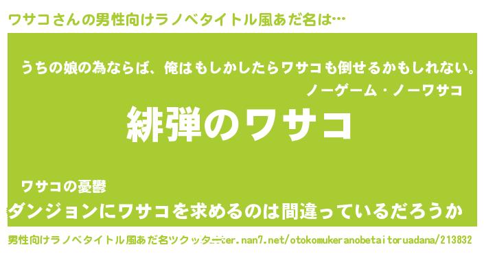 | ファンタジー風あだ名 | 『カークワサラー』『エターナルワサコー』 |