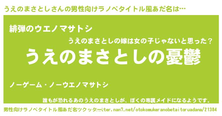 | 胡散臭い通販商品みたいなあだ名 | 『必ず成功する霊験あらたかなお札…その名も「うえのまさとし」』 |