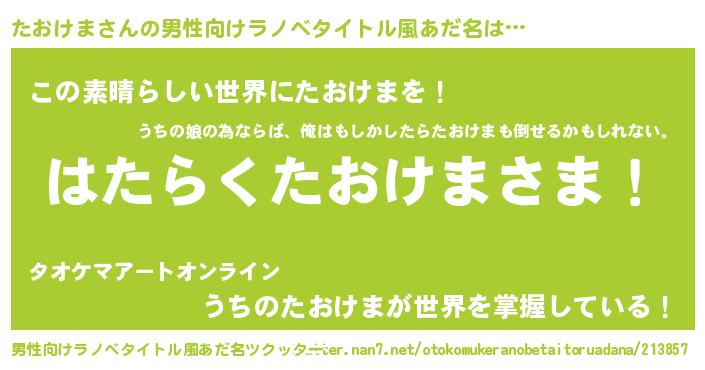 | 意味不明あだ名 | 『住所不定無職たおけま(5歳)』 |
