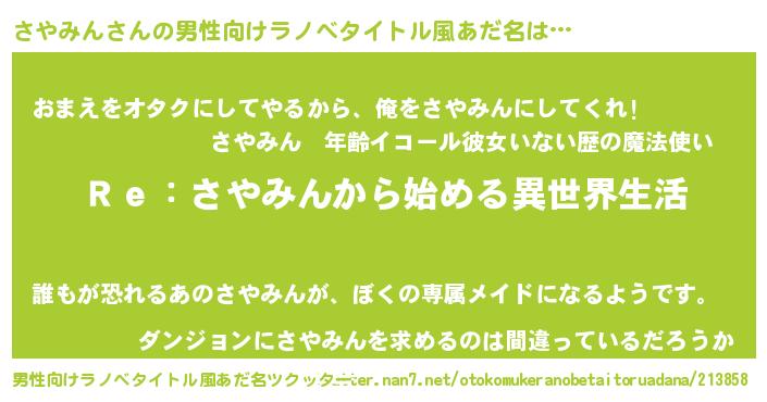 | 女子向けラノベタイトル風あだ名 | 『さやみんストレイドッグス』 |