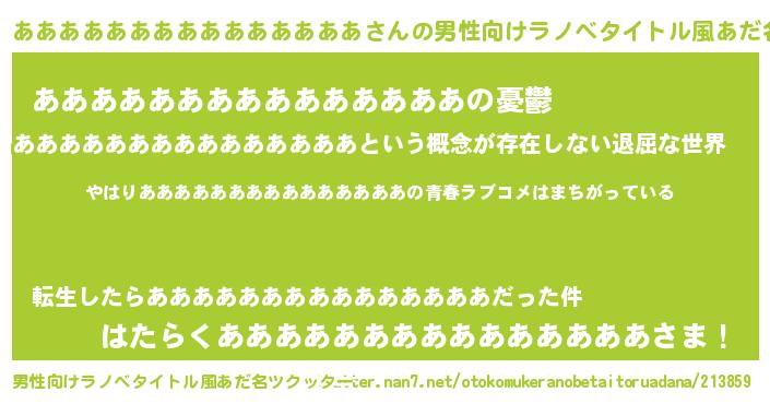 | 女子向けラノベタイトル風あだ名 | 『あああああああああああああああの雑貨屋さん』 |