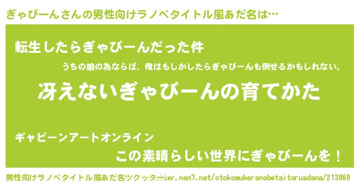 ぎゃびーんさんの男性向けラノベタイトル風あだ名をツクッター!