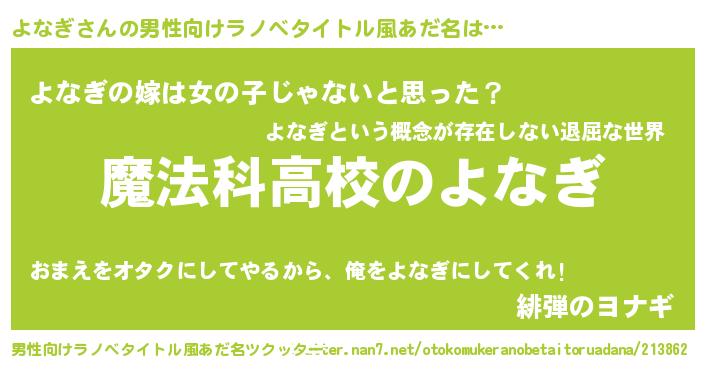| 女子向けラノベタイトル風あだ名 | 『よなぎアンティーク』『よなぎ恋絵巻』 |