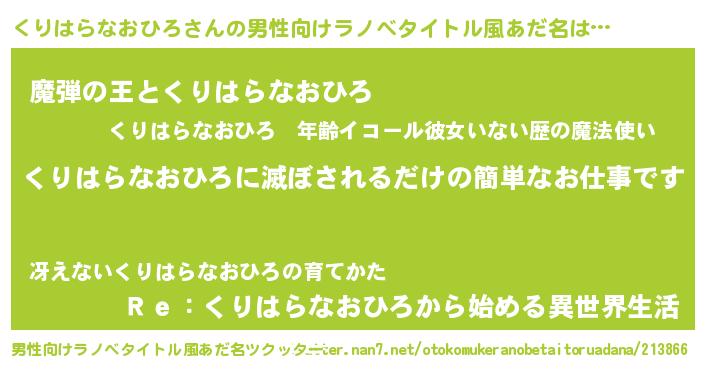 | 胡散臭い通販商品みたいなあだ名 | 『あなたにだけ特別に提供する世界で10本だけ現存している希少なブランデー…その名も「くりはらなおひろ」』 |