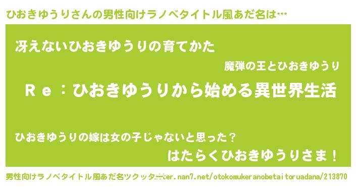 | 女子向けラノベタイトル風あだ名 | 『闇のひおきゆうり』 |