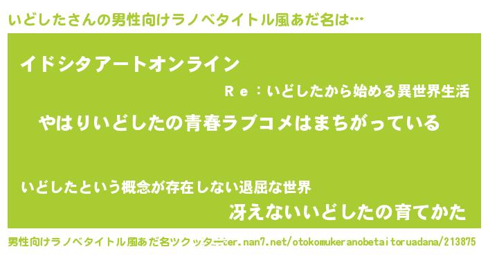 | 女子向けラノベタイトル風あだ名 | 『いどした伯爵の花嫁』『闇のいどした』 |