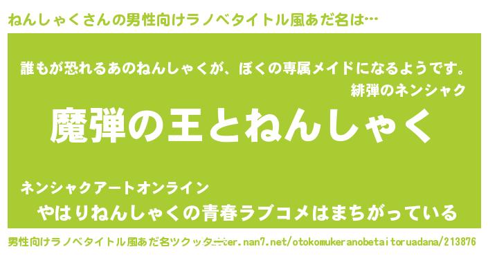 | 意味不明あだ名 | 『住所不定無職ねんしゃく(43歳)』 |